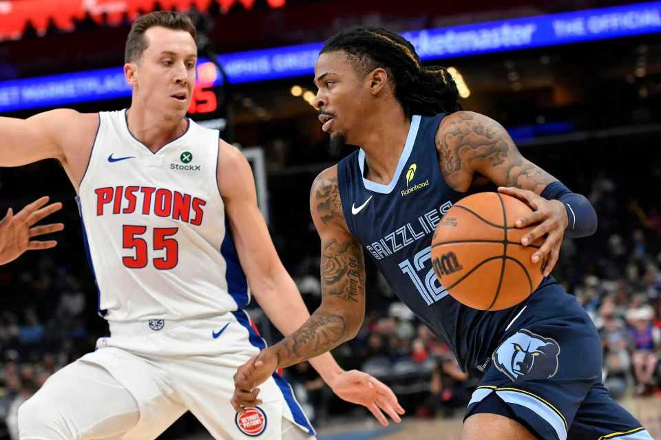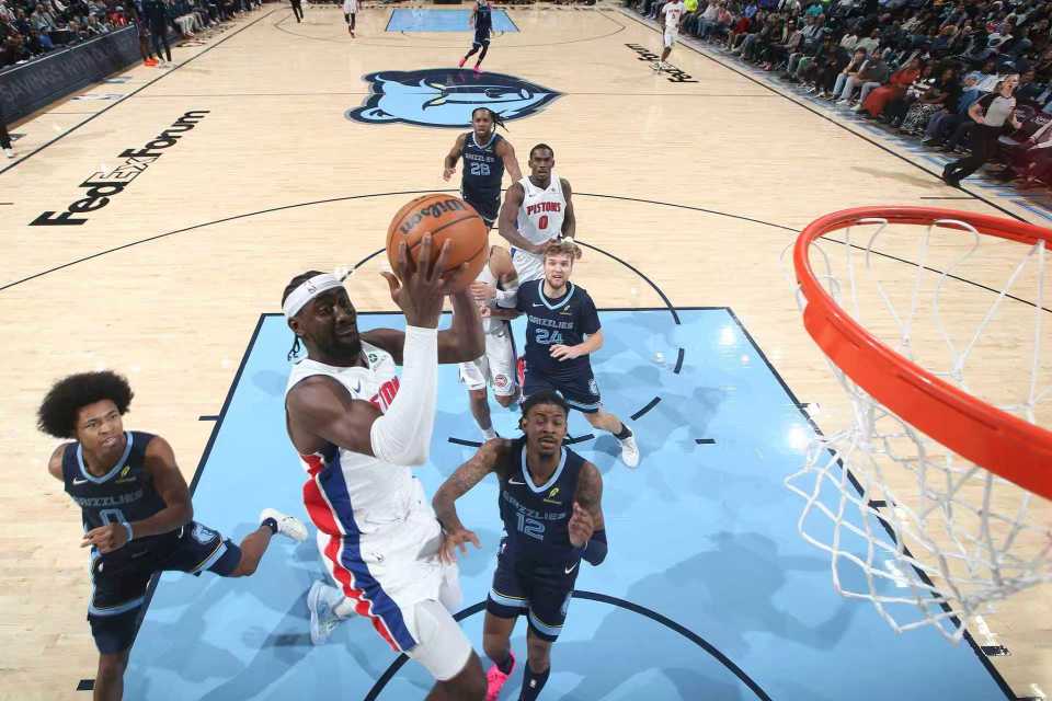 灰熊过去两场连输湖人与猛龙吞下2连败,活塞过去两场连续主场战胜魔术与独行侠收获2连胜。本场活塞缺少哈里斯、艾维与萨瑟,灰熊缺少克拉克、伊迪、小皮蓬与杰罗姆,莫兰特禁赛一场后复出。首节前4分半钟灰熊7-12落后,灰熊一波7-2攻势追到14-14,坎宁安攻传结合引领活塞重新取得领先优势,首节结束灰熊25-32落后活塞。
